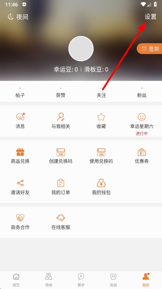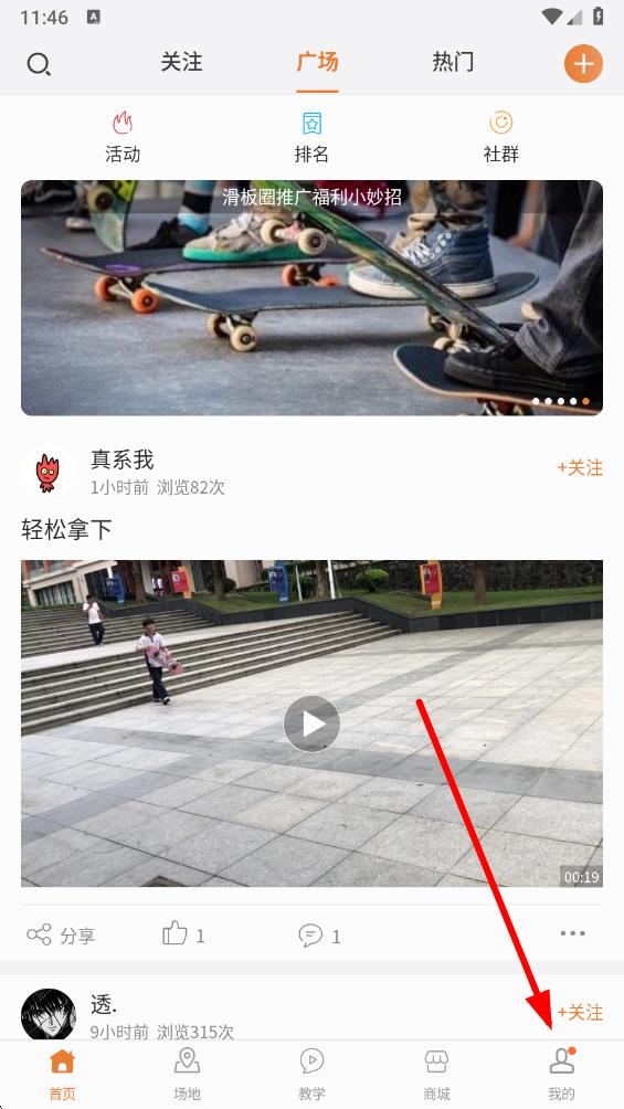 1、打开滑板圈app,点击底部导航栏最右侧的我的,进入个人页面。