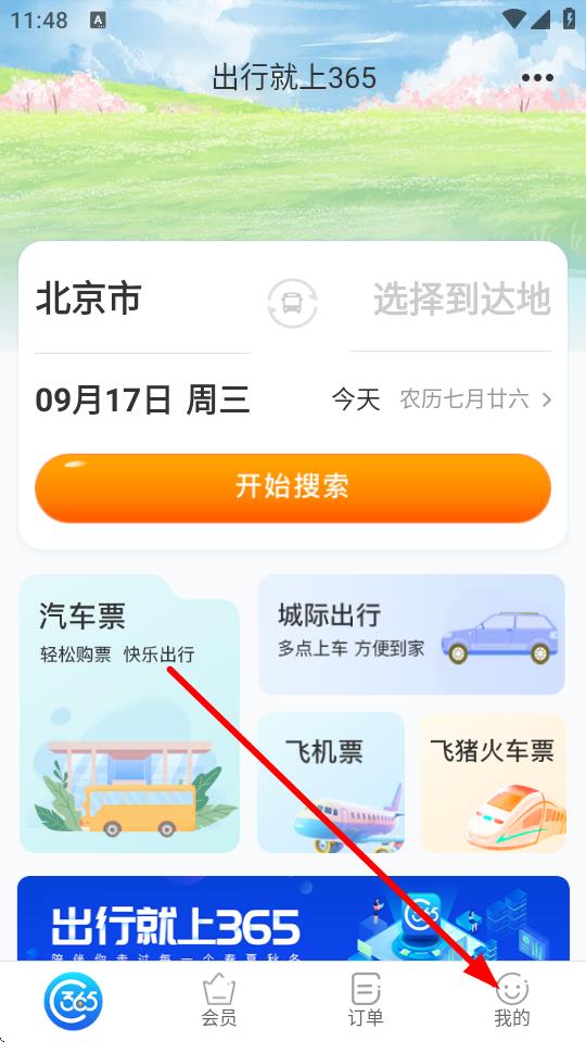 1、打开出行365 app,点击底部导航栏中我的进入个人页面。