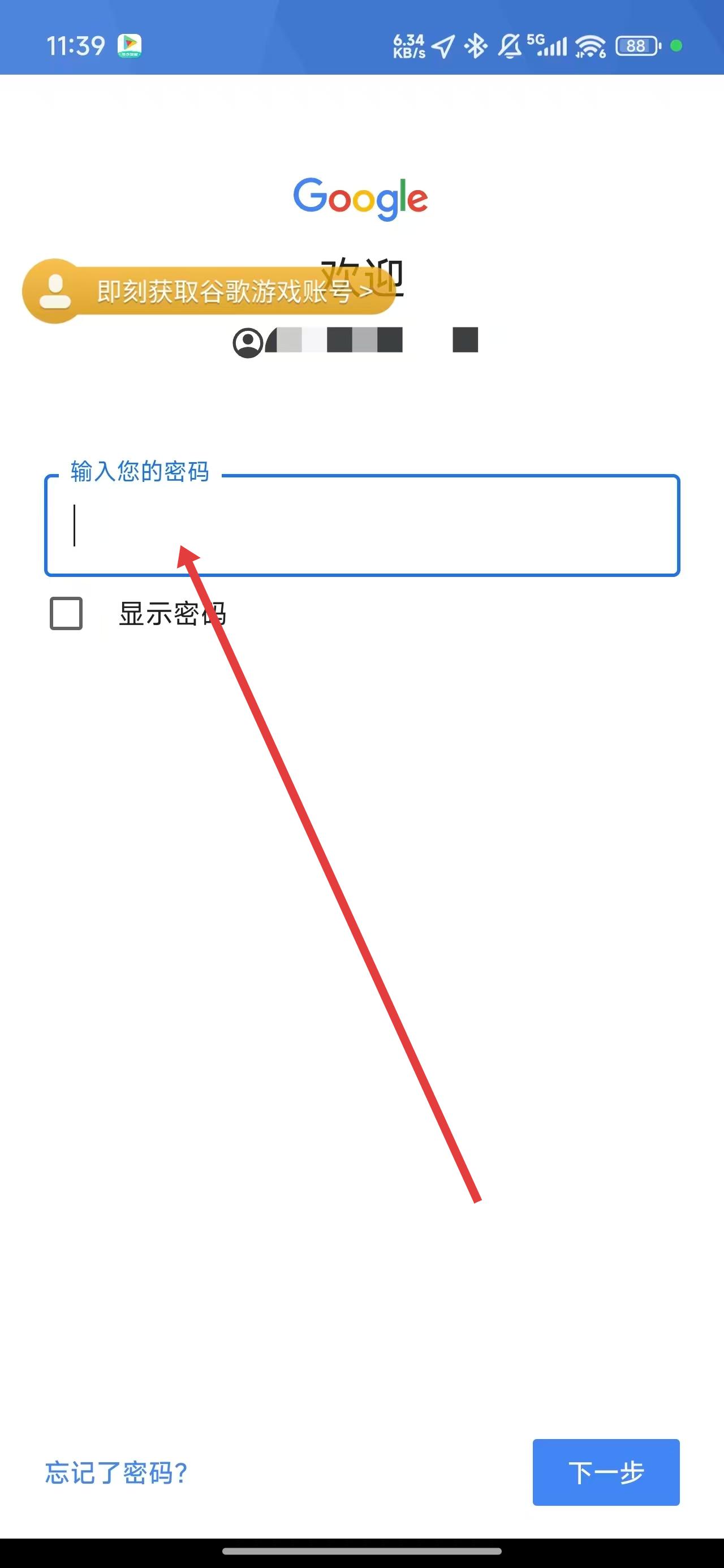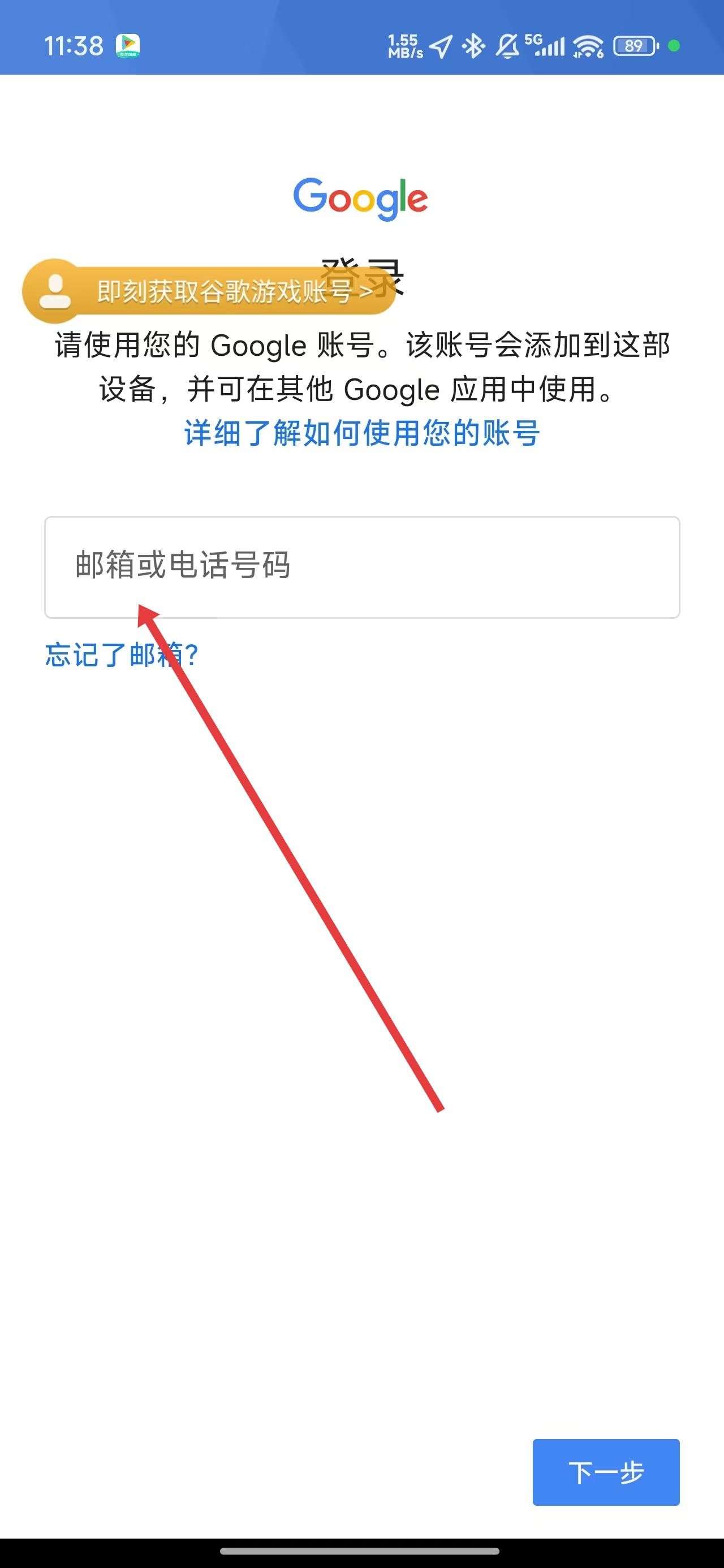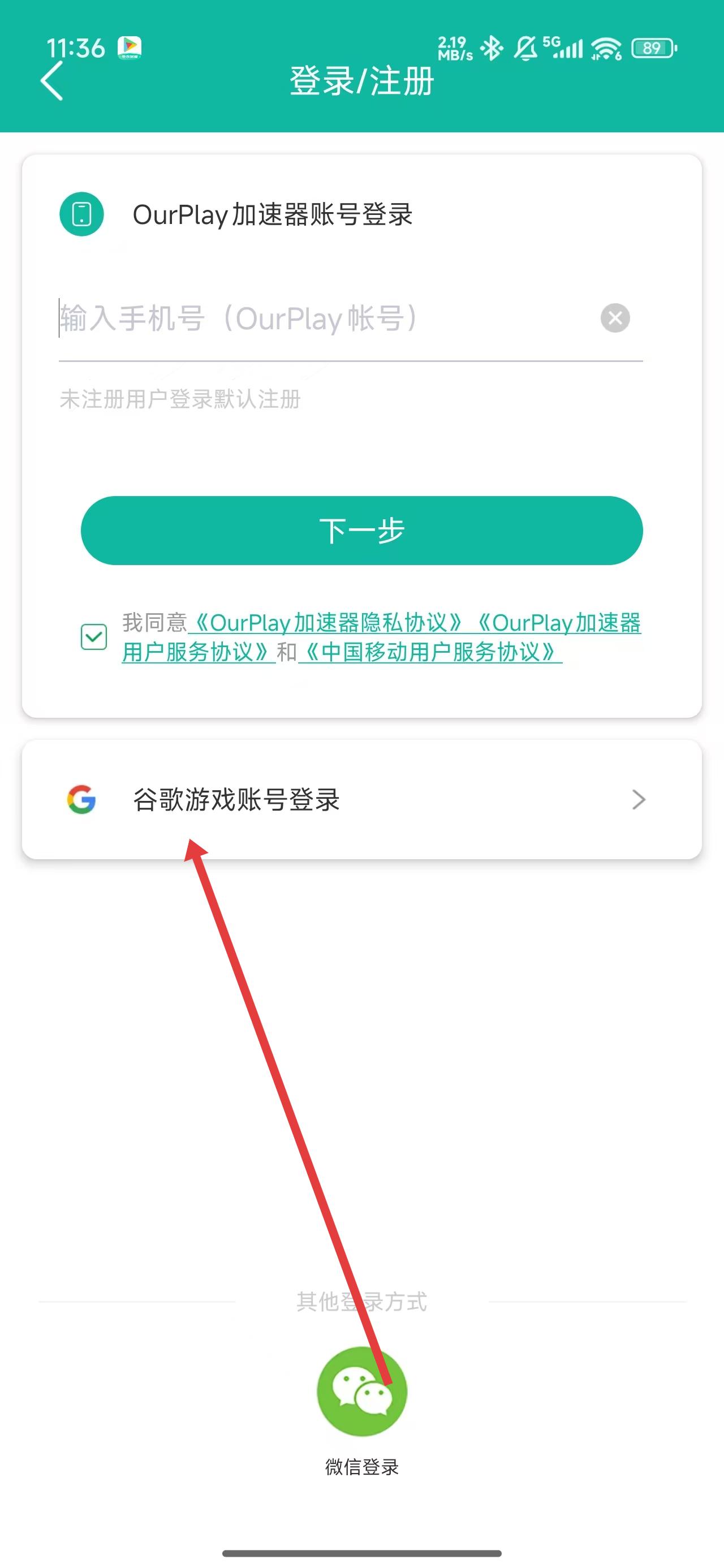 2、在进入到登录页面后,可以点击使用谷歌游戏账号登录方式登录。