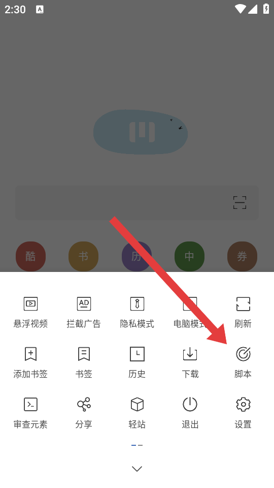 2、在功能的菜单中,点击脚本的选项,进入网页脚本管理页面。