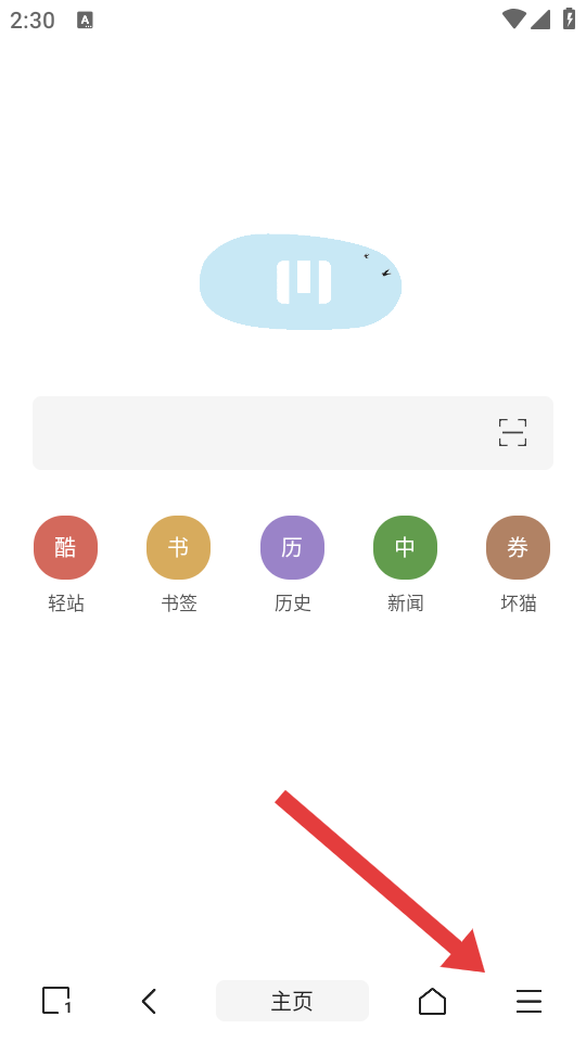 1、打开M浏览器,点击界面右下角的菜单图标,展开功能菜单。