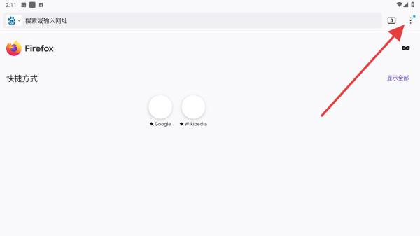 1、启动火狐浏览器应用软件,点击右上角三个点的图标。