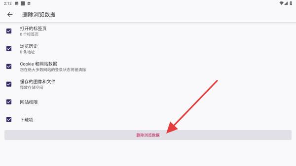 4、进入到删除浏览数据的界面内,勾选要删除的数据内容,再点击删除浏览数据的按钮即可。