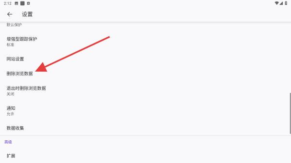 3、在设置的页面内,向下滑动点击删除浏览数据的功能。