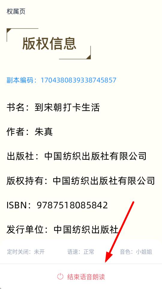 4、在听书过程中,若想结束语音朗读,点击底部出现的结束语音朗读选项即可。