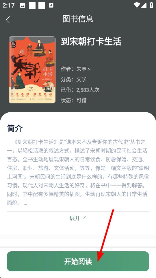 2、进入到宋朝打卡生活图书信息页面后,点击开始阅读按钮进入阅读界面。