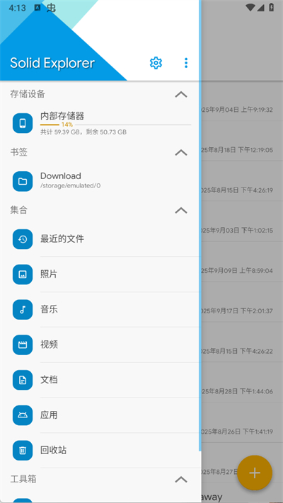 Solid Explorer中文版是一款文件管理软件。支持双窗口浏览,可以同时访问和管理两个不同的文件夹,大幅提高操作效率,还集成了多种云存储服务,如Google Drive、Dropbox、OneDrive等,使得文件的上传、下载和同步变得轻而易举。