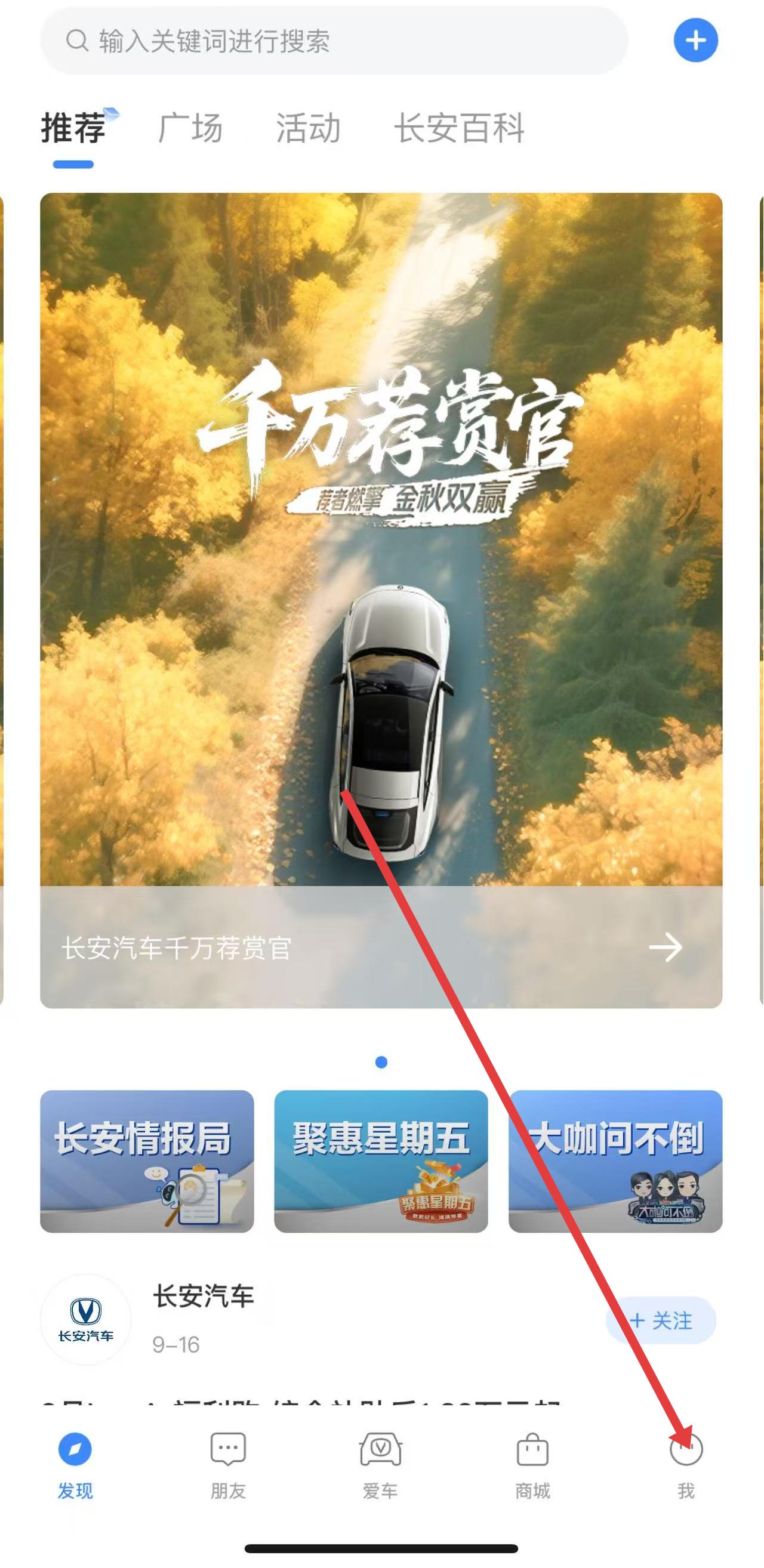 1、打开长安汽车APP,点击底部导航栏中的我进入个人页面。