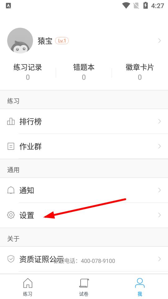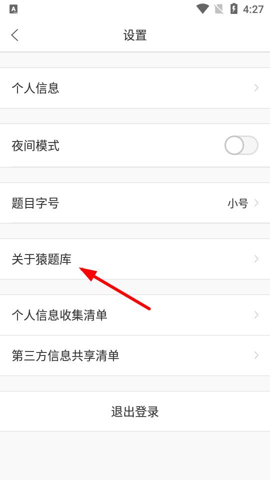 3、在设置界面里,找到并点击关于猿题库选项,进入关于页面。