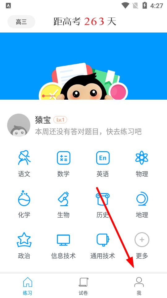 1、打开猿题库app,点击底部导航栏最右侧的我选项,进入个人相关页面。