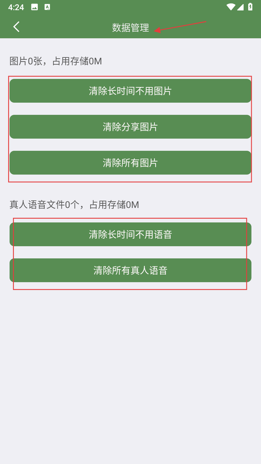 4、在数据管理页面,可根据需求点击按钮,完成对应数据的清除操作。