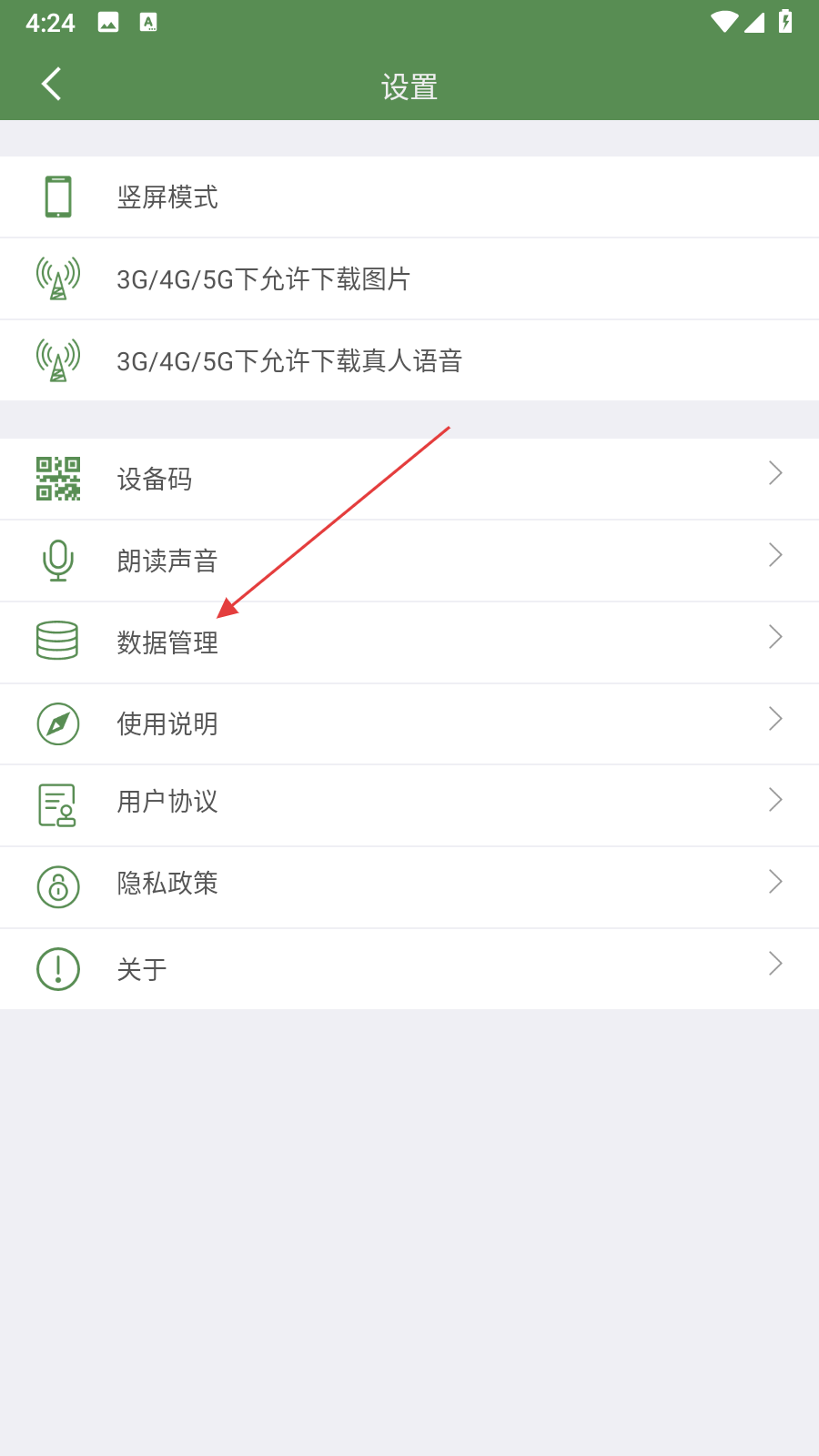 3、在设置界面里,点击数据管理选项,进入数据管理页面。