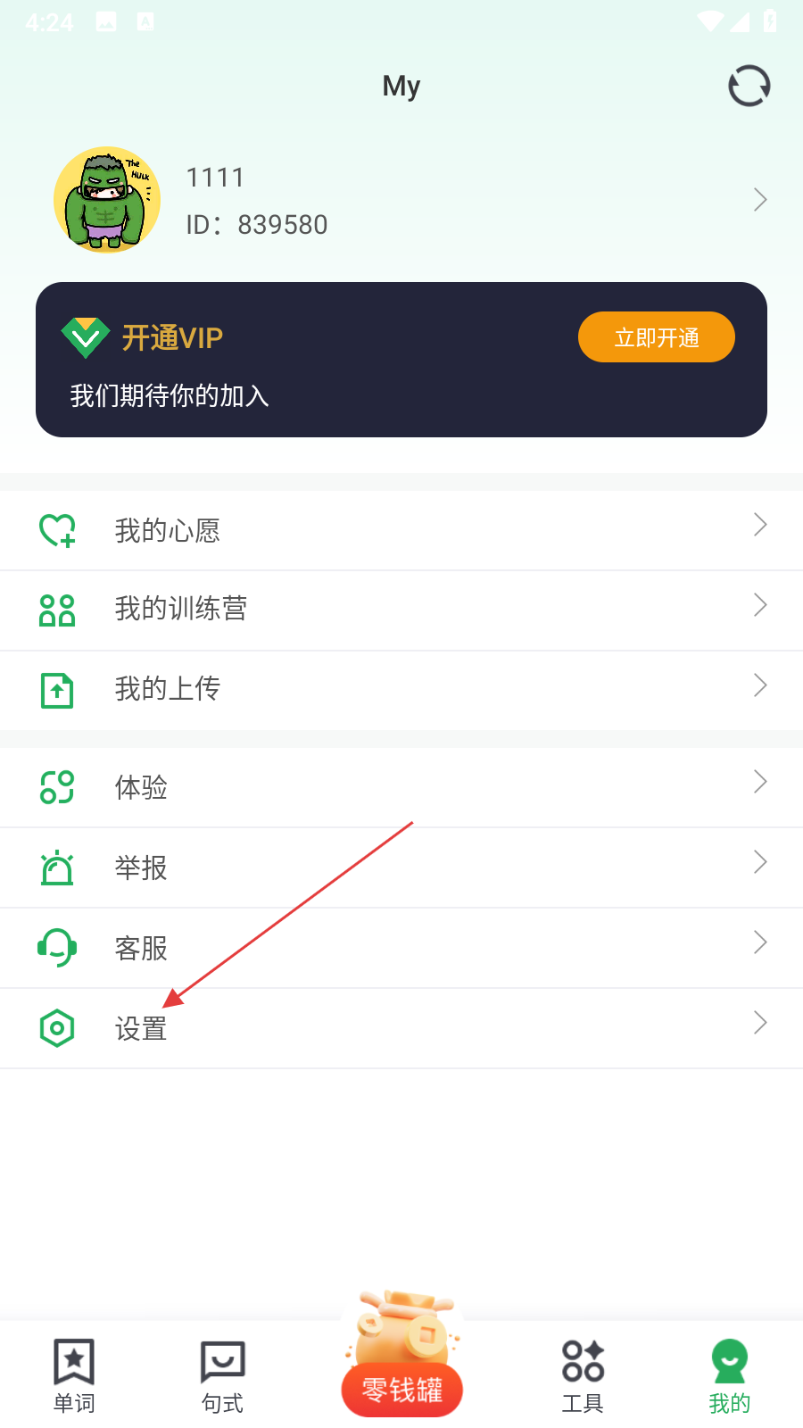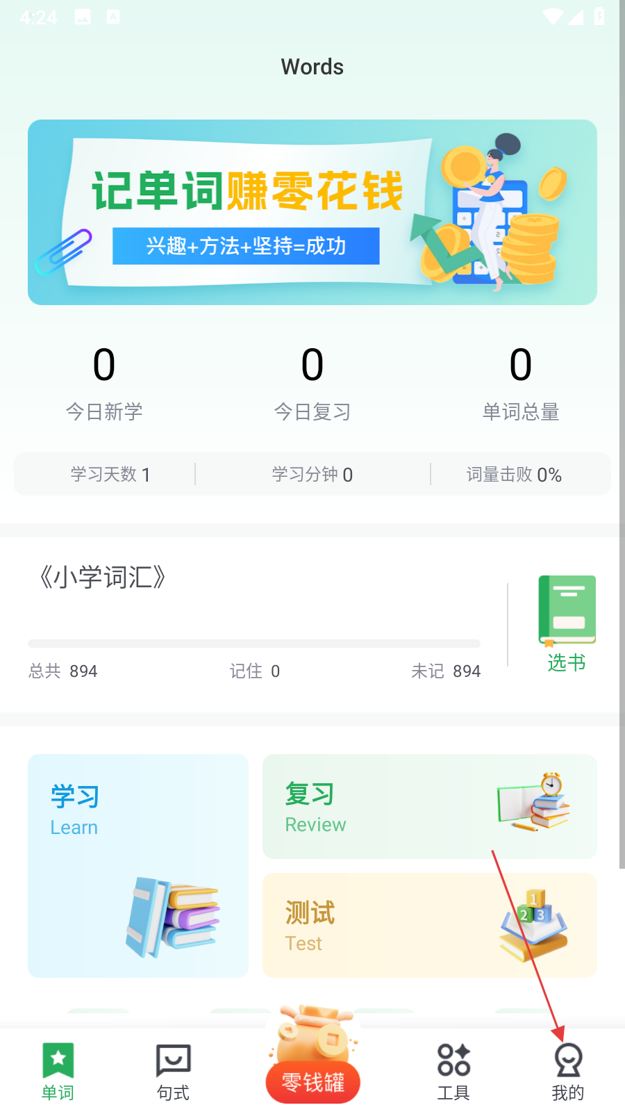 1、打开芝麻单词APP,点击页面右下角我的,进入个人页面。