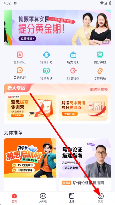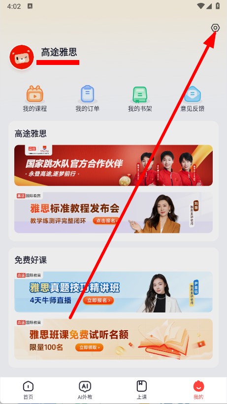 1、打开高途雅思,点击底部我的选项,进入个人中心页面。