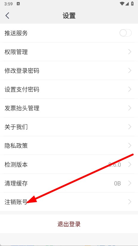 3、在设置页面,点击注销账号选项,弹出温馨提示弹窗。