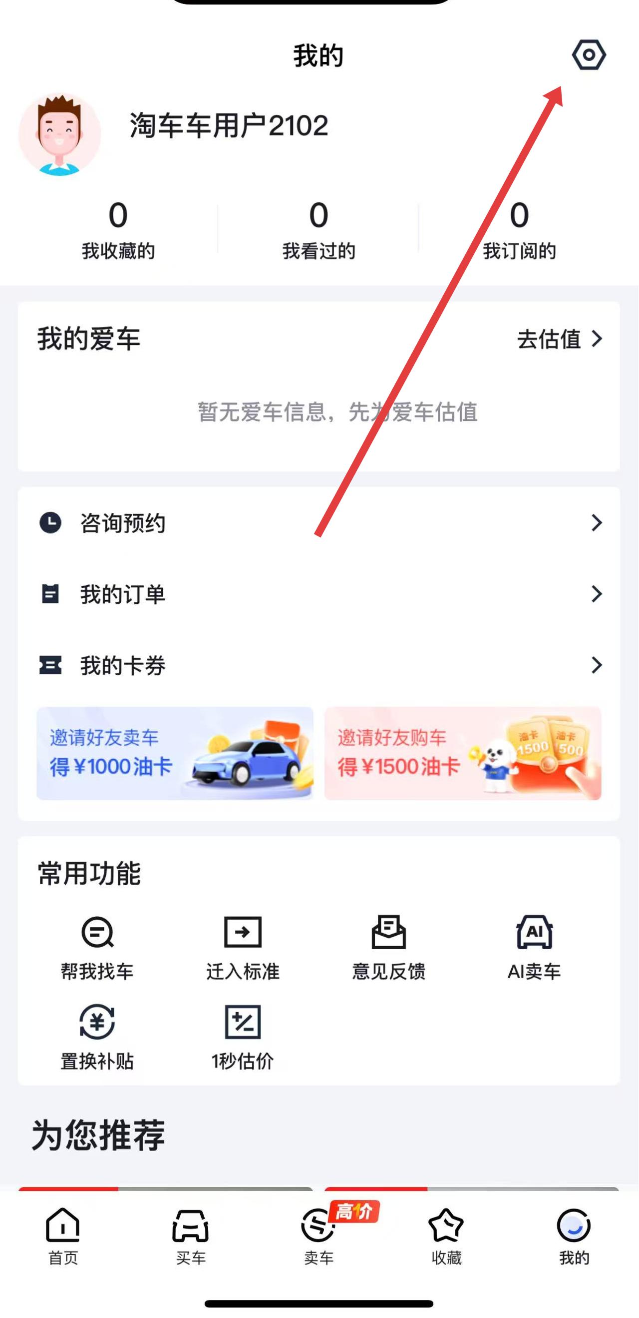 1、在我的页面右上角,点击设置图标进入设置界面。