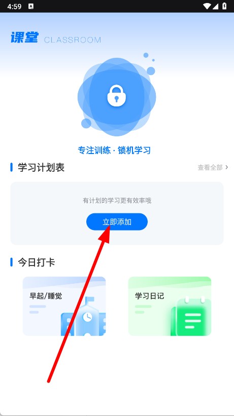 3、在学习计划页面,点击立即添加按钮,弹出添加计划弹窗。