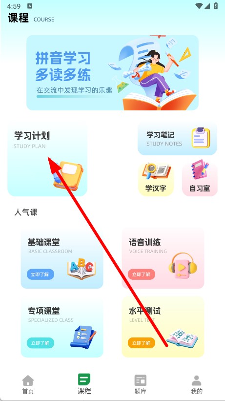 2、在课程页面,点击学习计划选项,进入学习计划页面。