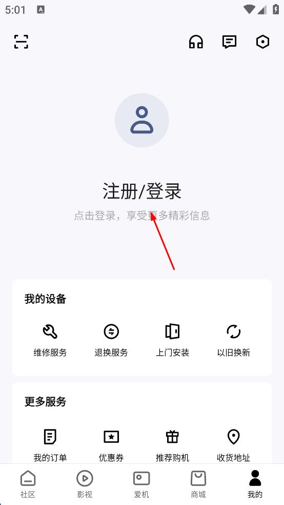 4、按照页面提示完成注册流程后,即可成功注册,之后能在APP内浏览服务顾问、售后服务等板块,查看玩机攻略,参与相关活动。