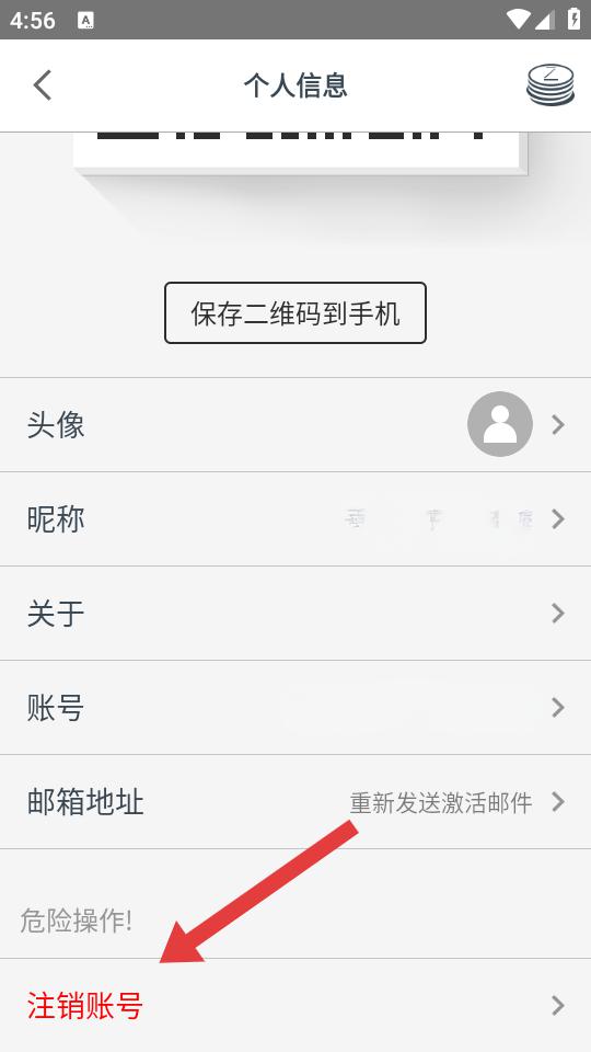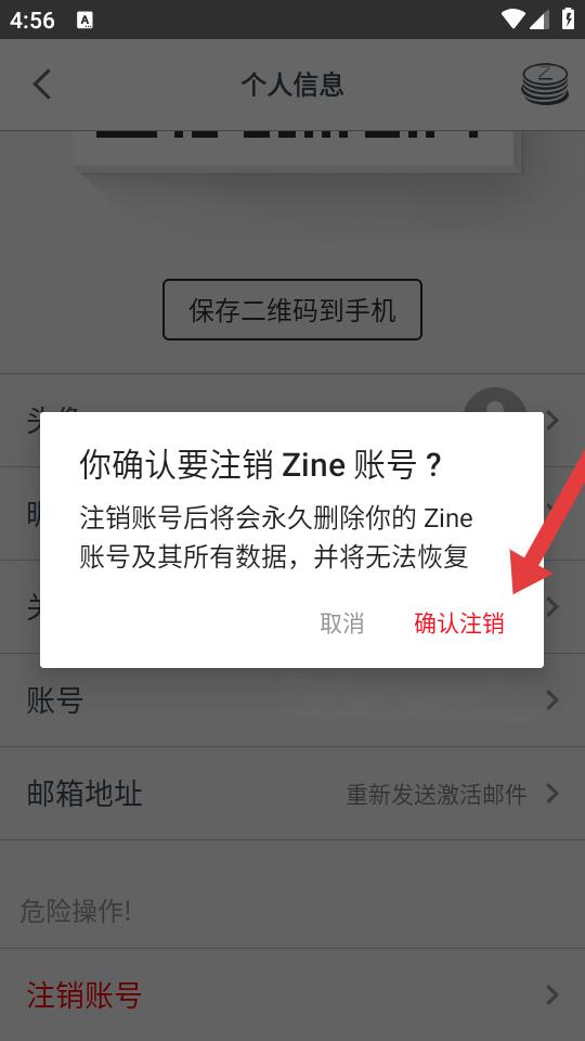 3、在个人信息页面里,点击注销账号的选项,触发注销确认提示框。