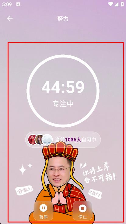 4、在专注学习页面,可进行专注学习,页面会显示专注时长等信息。