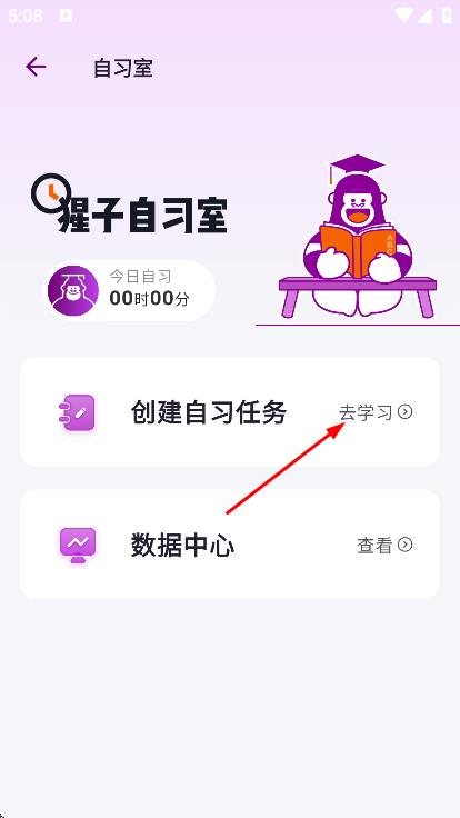 2、点击创建自习任务旁的去学习,进入添加学习任务页面。
