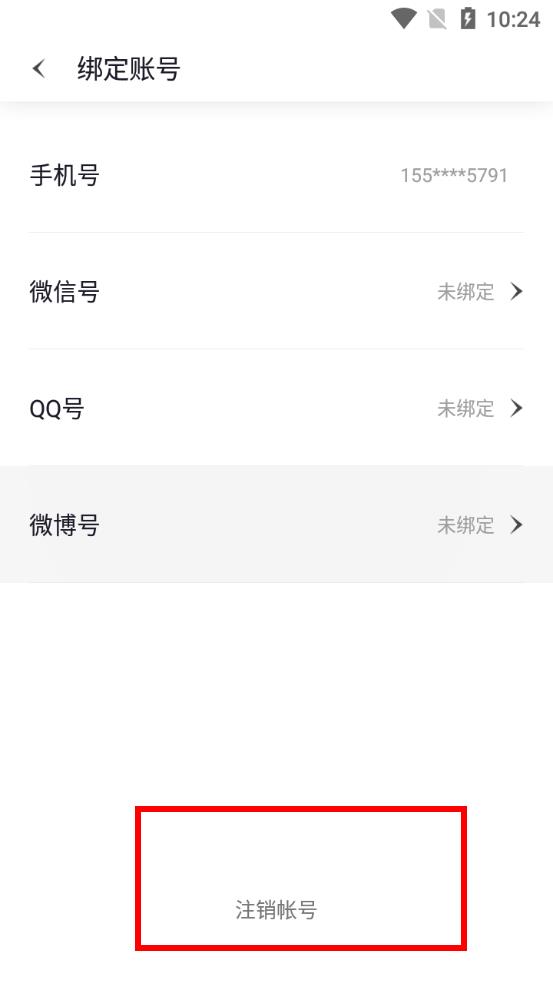 4、在绑定账号界面下方找到注销帐号选项,点击后按提示完成账号注销操作。