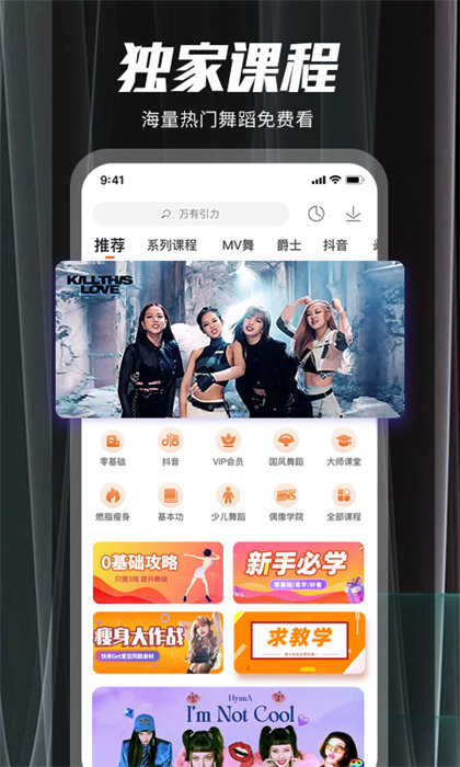 1.海量免费舞蹈在线课程,MTV DANCE、爵士舞、HIPHOP等等,专为零基础的你度身打造易学的流行舞蹈。