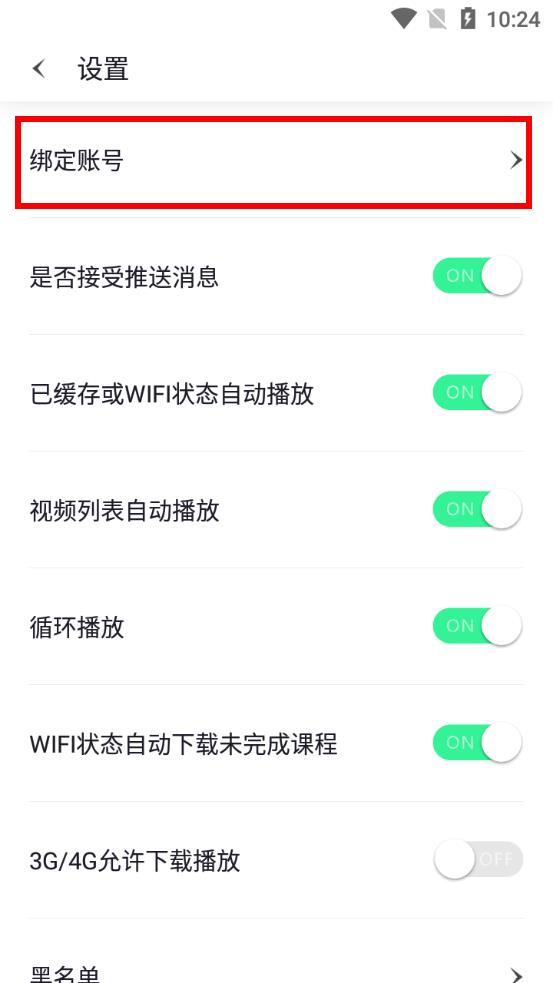 3、在设置界面中找到绑定账号选项,点击进入绑定账号界面。