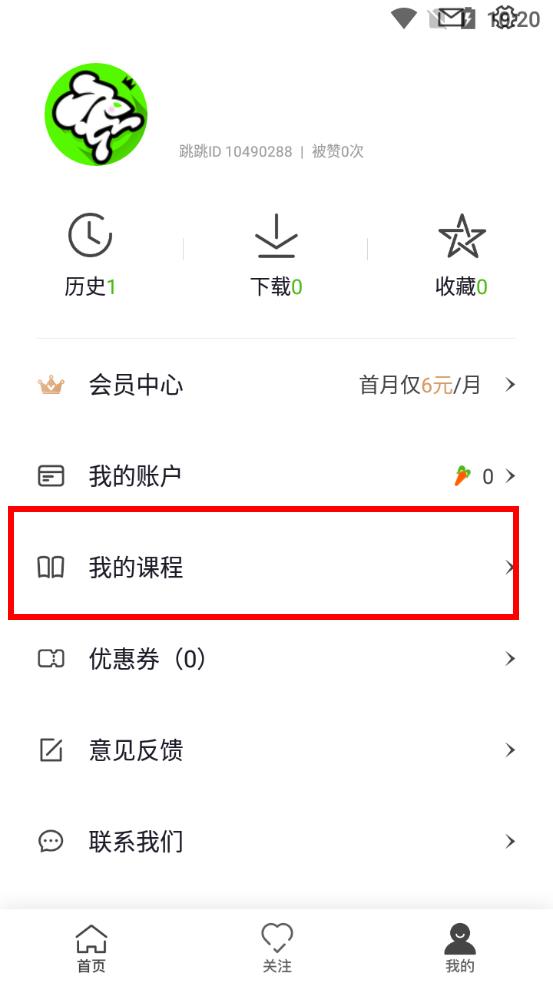 2、在个人界面找到,我的课程选项并点击进入。