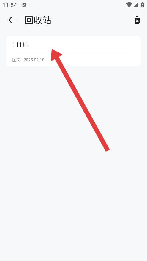 3、在回收站界面,找到需要恢复的笔记内容,点击该条笔记。
