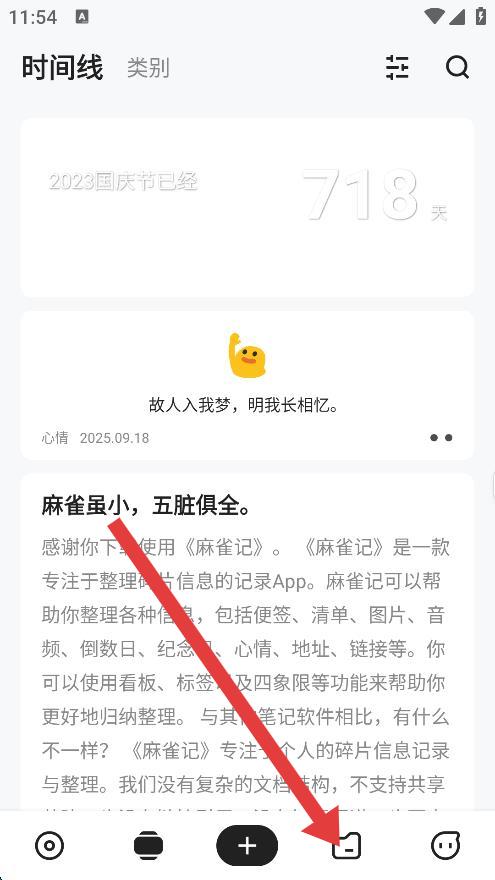 1、打开麻雀笔记app,进入主界面,点击底部导航栏中看板形状的图标,进入看板页面。