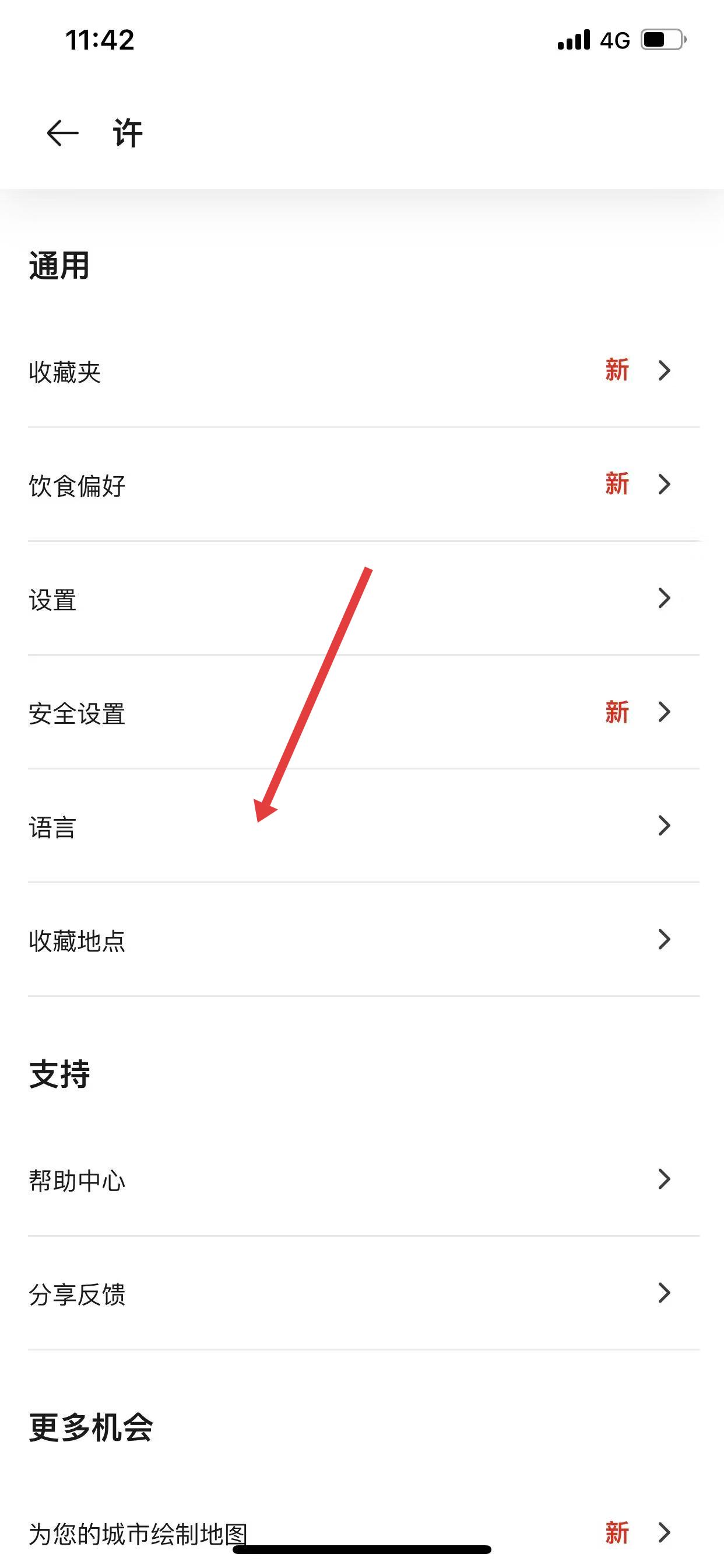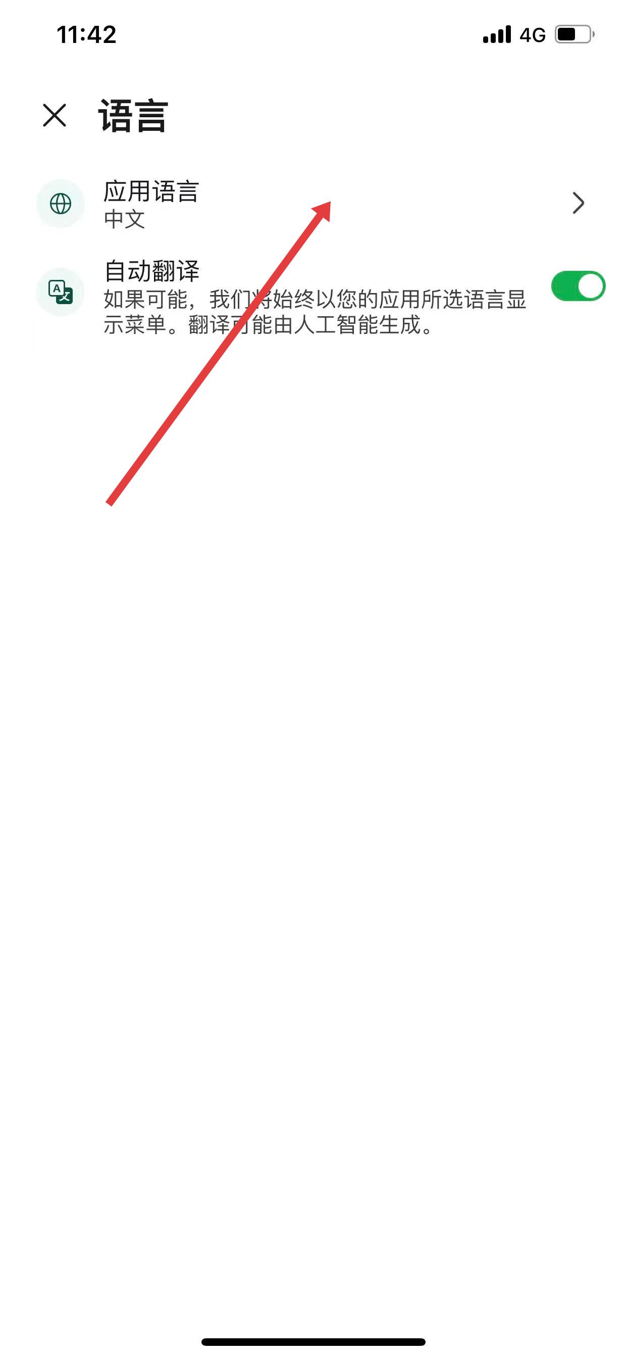 3、点击语言选项后,会看到应用语言,点击进入。