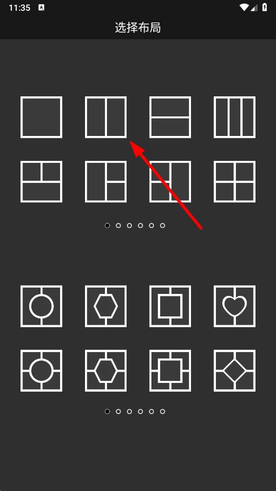 2、在选择布局页面,浏览多种布局样式,点击选中符合自己需求的拼图布局。