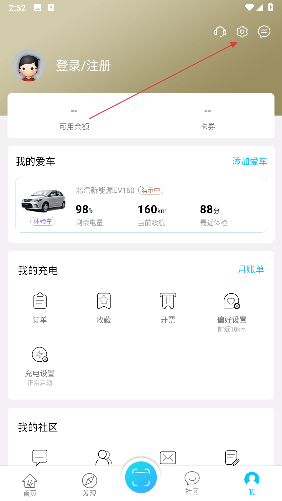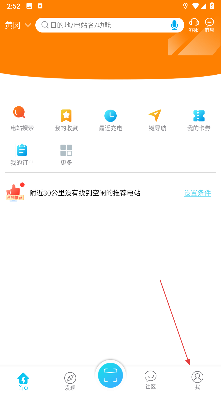 1、打开黄冈充电APP,点击底部导航栏我,进入个人中心页面。