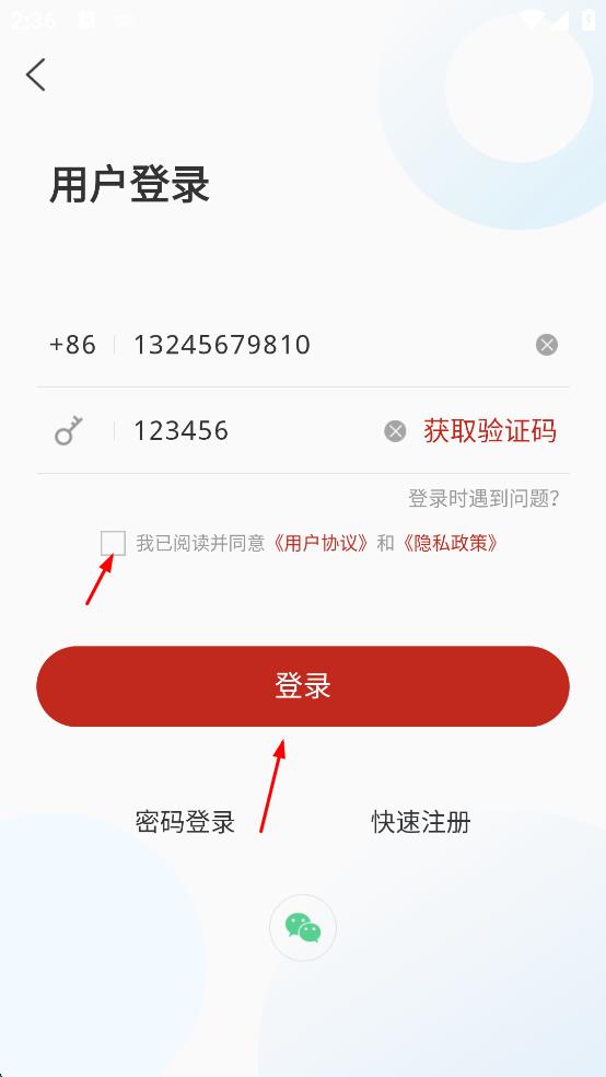 4、确认手机号码和验证码输入无误,且勾选我已阅读并同意用户协议和隐私政策后,点击登录按钮,即可完成莱州融媒APP的登录操作。
