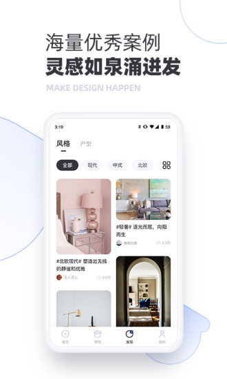 3、设计学院:丰富的3D云设计课程,涵盖3D工具、案例解析、名师访谈、家居渲染、家具模型等多个维度,助力设计师开阔视野、提升效率。