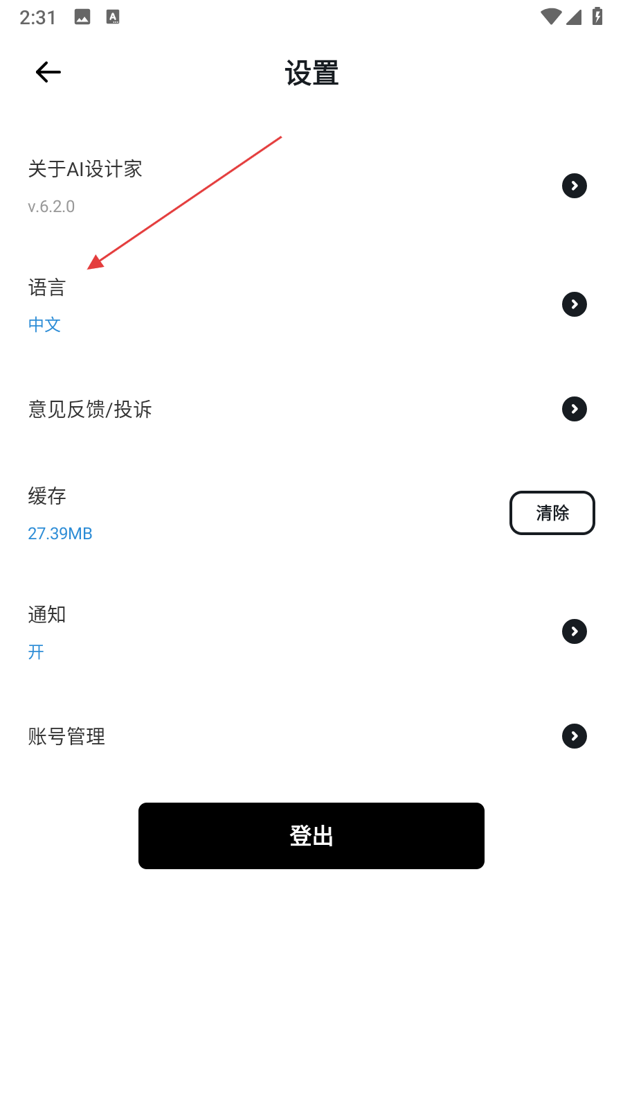 3、在设置页面找到语言选项并点击,进入语言设置界面。