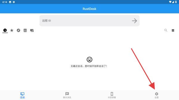 1、打开RustDesk的应用软件,点击右下角齿轮设置的图标。