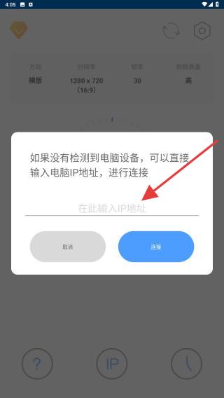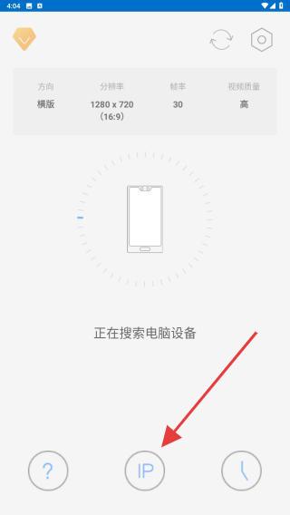 1、打开EV虚拟摄像头APP,在首页内点击IP的按钮。