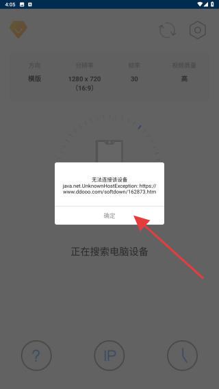 4、过程中会不断尝试连接,若出现无法连接设备,可点击确定重新输入IP地址。