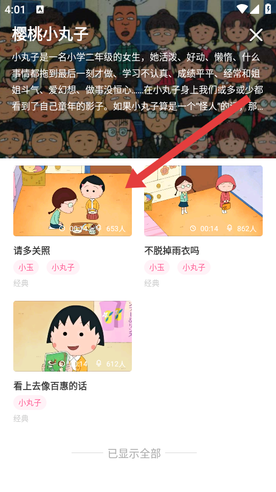 3、进入所选日漫的视频列表后,需要点击要配音的具体片段。