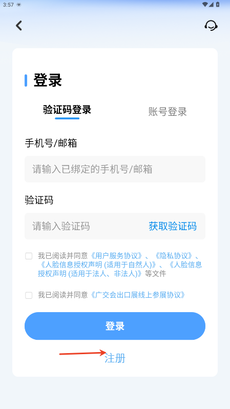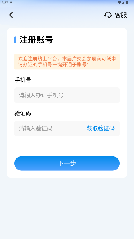 3.输入手机号获取验证码,根据提示填写信息后完成注册