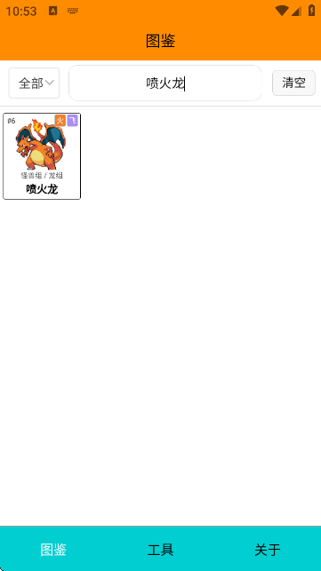 2、在搜索框输入“喷火龙”或“#6”(喷火龙全国图鉴编号),点击搜索结果进入喷火龙详情页;