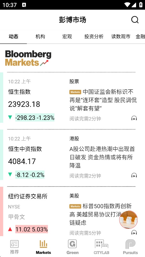 4、源自24小时在线播放全球商业/金融内容的彭博TV,包括重要事件呈现、全球商业金融有影响力的人物独家采访、彭博社深度评论和事件分析等精彩视频内容。
