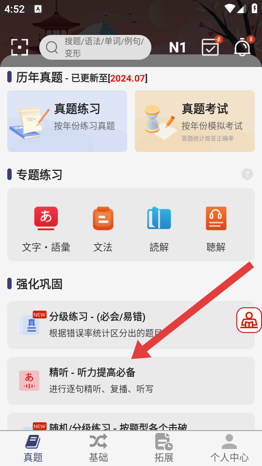 涵盖2010-2024年N1真题,可以掌上模拟N1模拟测试。