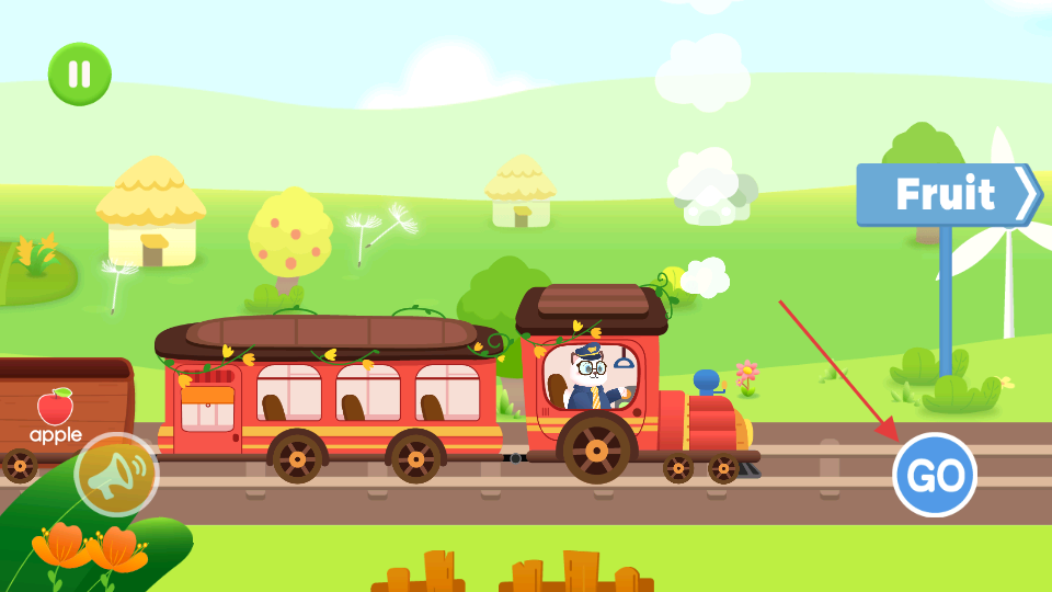 3、接着点击GO按钮,操控火车让它驶向Fruit区域。