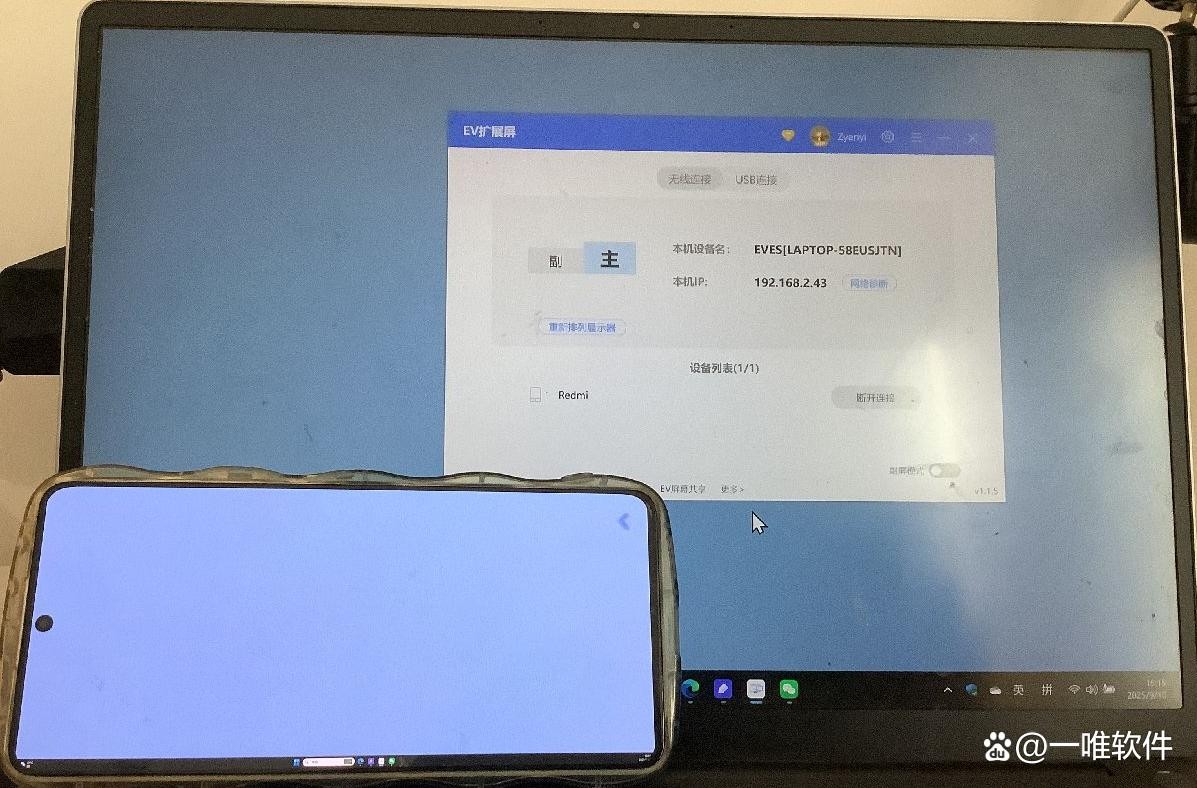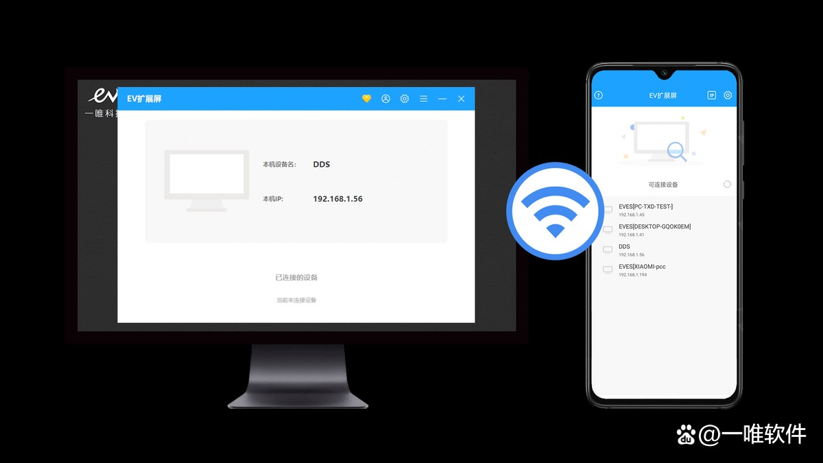 1、手机和电脑需要同时安装EV扩展屏,手机和电脑需要连接同一个WiFi网络。