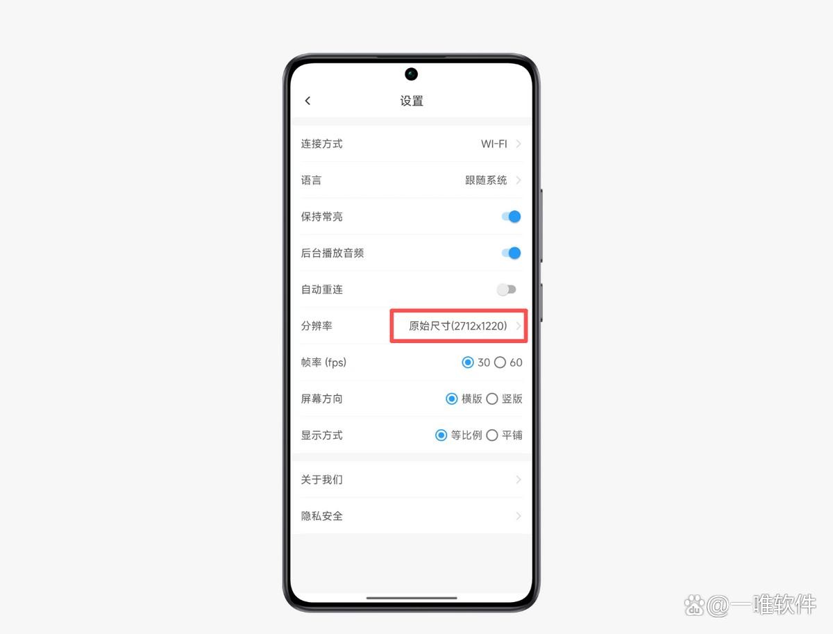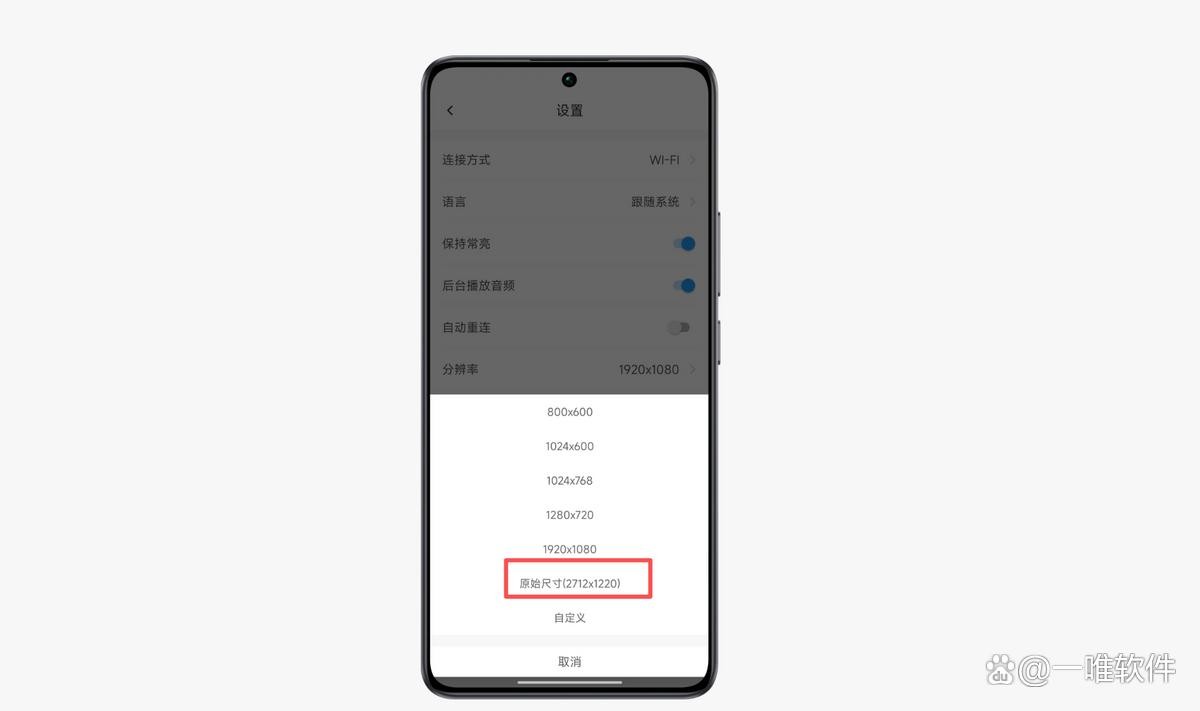 4、将分辨率调整为原始尺寸。此时EV扩展屏设置的就是手机的原始分辨率。这样连接之后就不会有黑边啦。