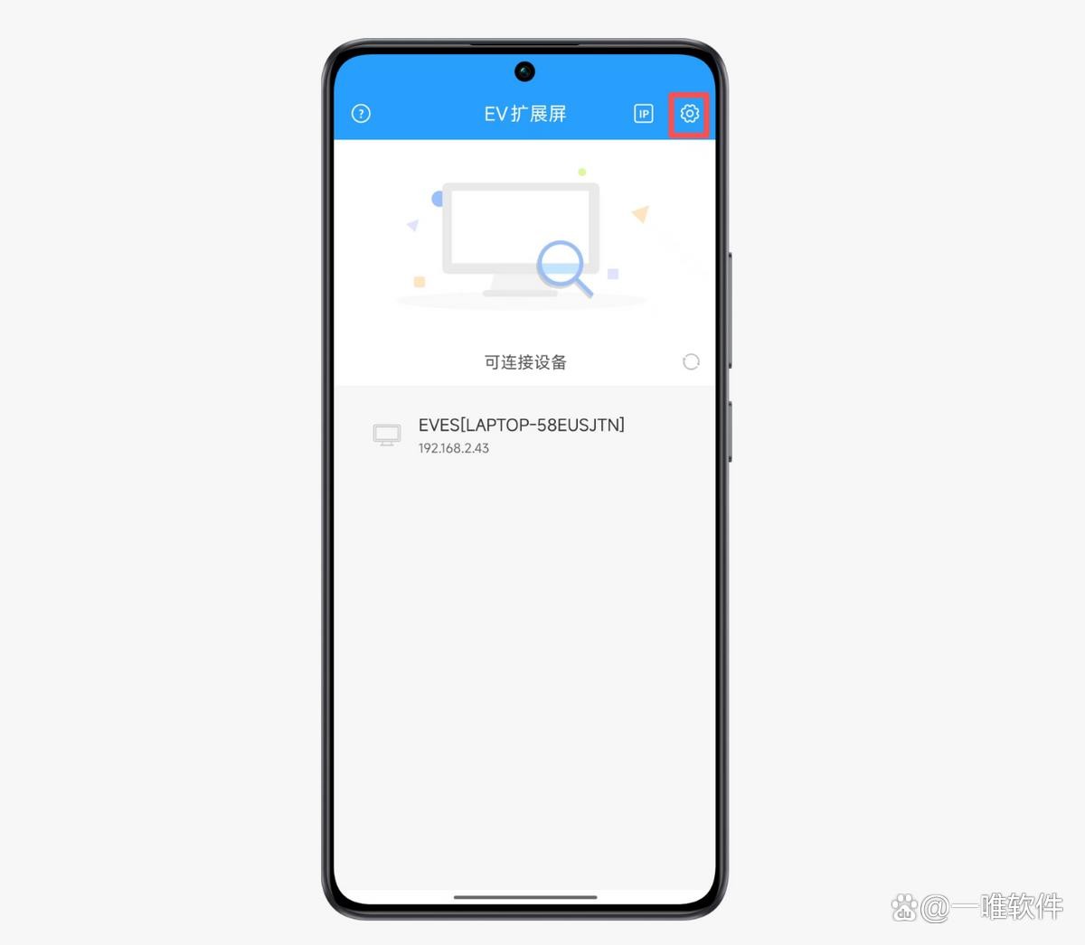 2、手机上的EV扩展屏点开右上角的设置按钮。